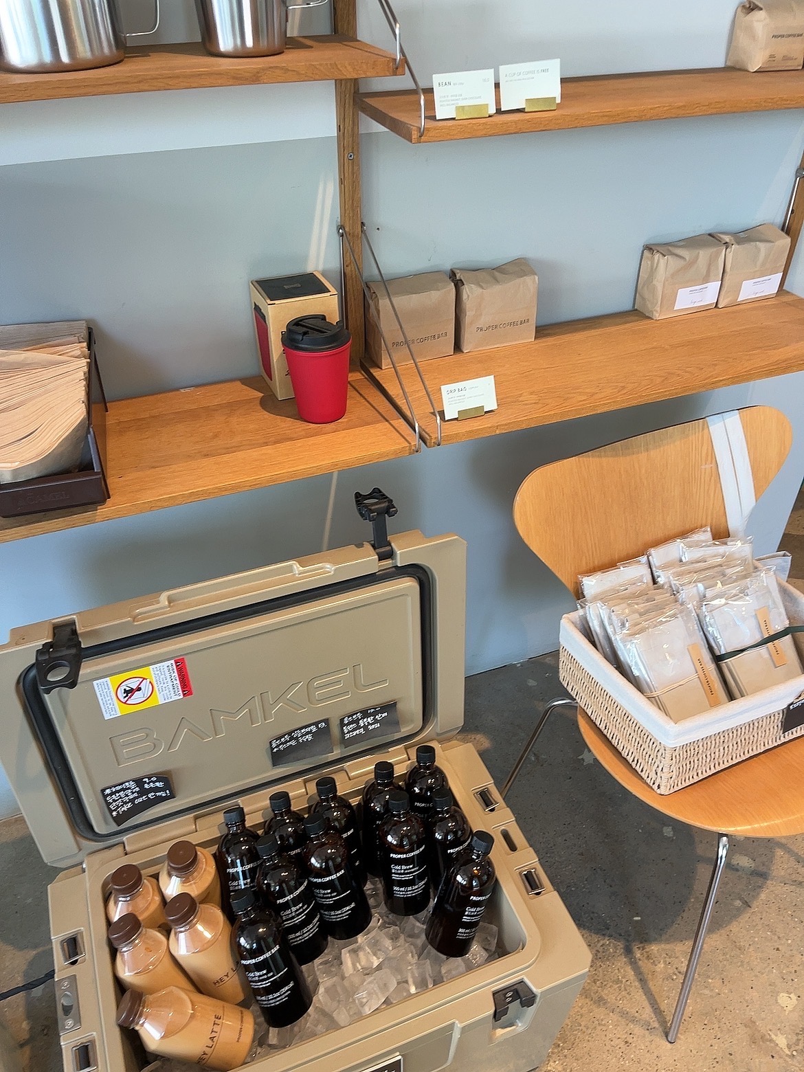 여기는 '커피바' 답게 커피 맛으로도 일가견이 있는 듯해요. 원두도 따로 판매하고, 시그니처 라떼, 콜드브루를 보틀로 구매 가능합니다.