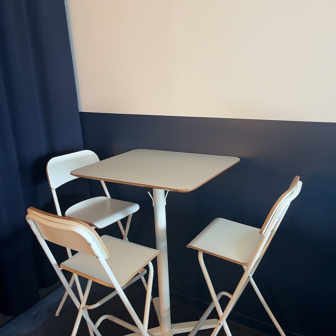 톤은 화이트와 네이비 계열로 통일감을 주었고, 조명이 있는 테이블이 있어서 필요하신 분들은 활용도 만점.