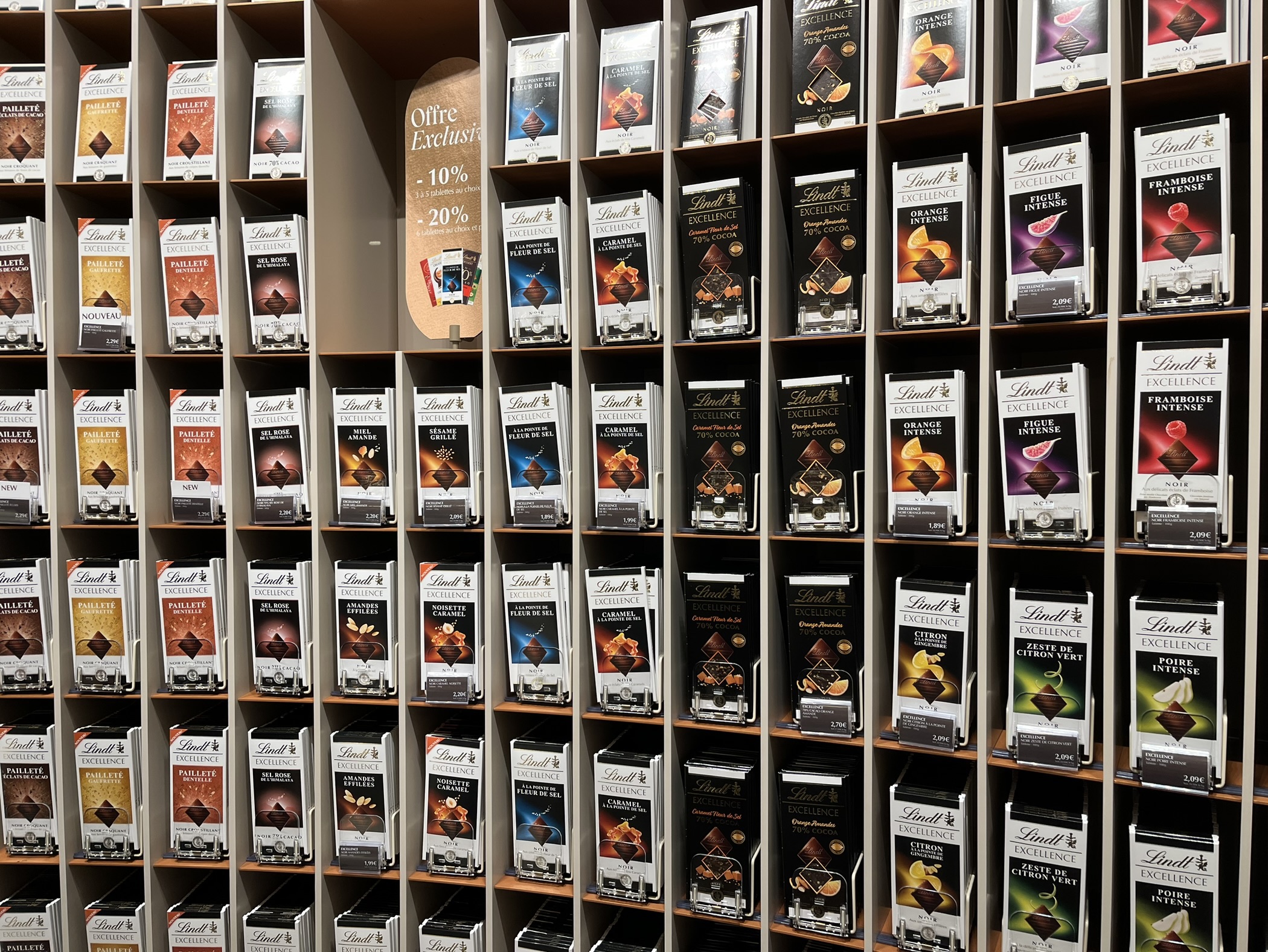 5. 린트 초콜릿 매장- 린트 초콜릿의 다양한 종류를 경험할 수 있는 대규모 매장